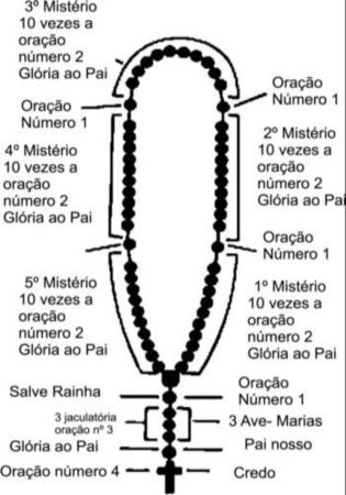Oração Número 1 – No lugar de cada Pai Nosso reza-se: “Sagrados Corações de Jesus e de Maria, protegei nosso lar, nossa família e nossa pátria de todo mal e de todo pecado. E, salvai-nos pela chama de amor dos Vossos Sagrados Corações”.